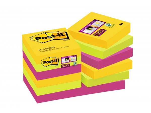 Märkmepaber 51x51mm Post-it 12x90l Super Sticky RIO